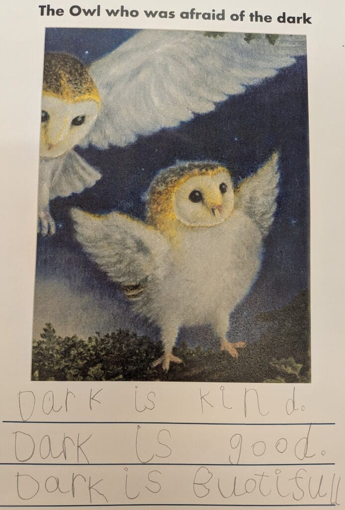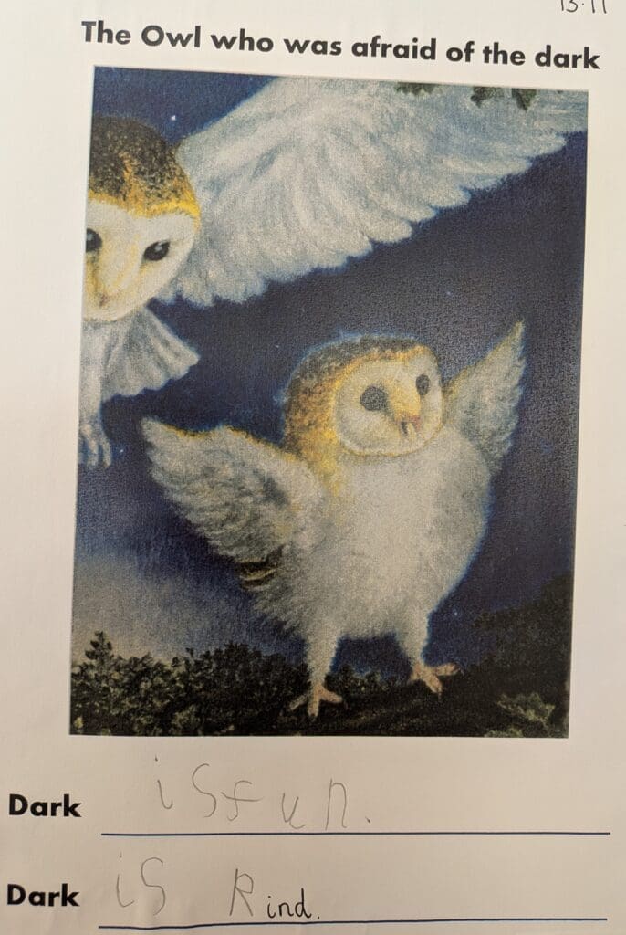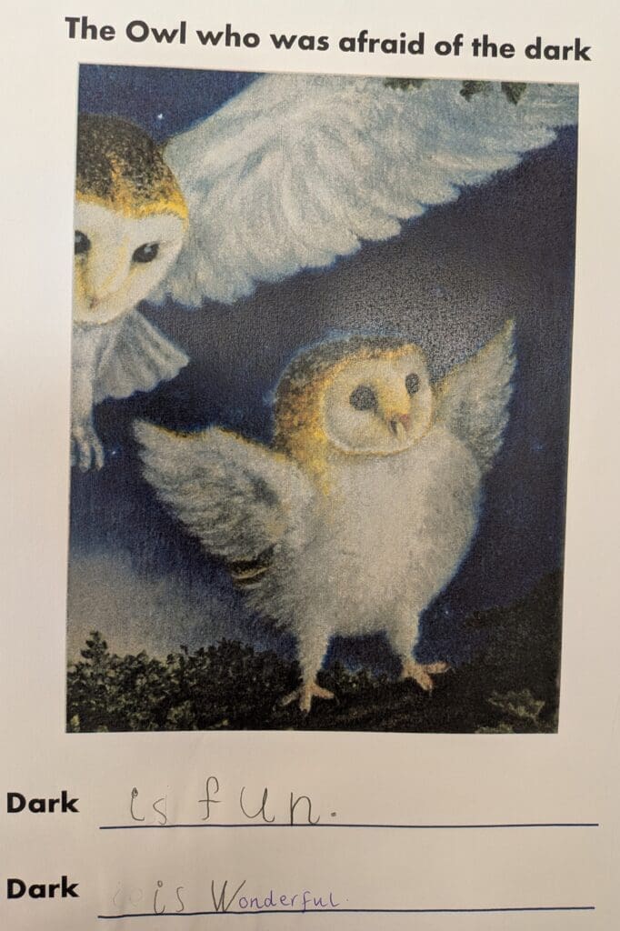 This week we have really enjoyed reading ‘The Owl who was Afraid of the Dark’ by Jill Tomlinson. The story was a great follow on from learning about celebrations that happen at night. We loved hearing the different adjectives for the dark and thought of our own. We talked about what the word ‘nocturnal’ means and thought about some other nocturnal animals that we know.
