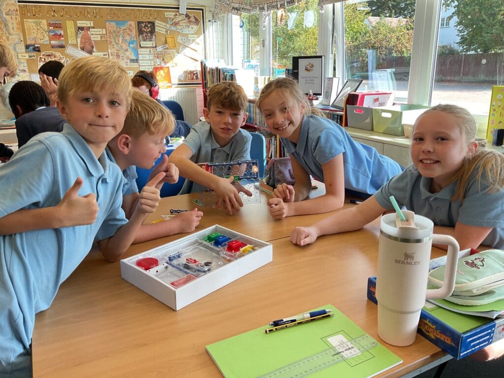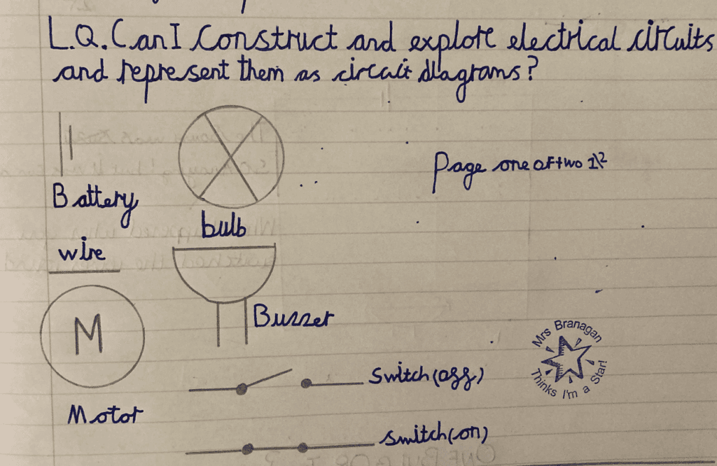 Years Five and Six have had lots of fun learning about electrical circuits during their science lessons this half term. We began by thinking about what we already knew – I was very impressed by how much the children could remember from their learning in Year Four. Next, we were set the challenge of making a bulb light up using a battery and two wires but without a bulb holder. We learnt that one wire had to connect to the base of the bulb and the other to the side.